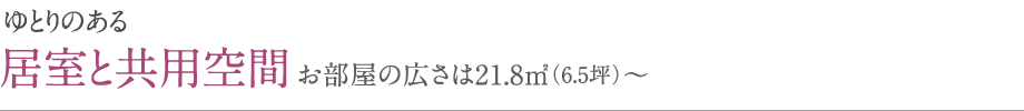 お部屋の広さは、21.8㎡(6.5坪)~68.4㎡(20.6坪)。車椅子でも移動できるほどのゆとりがあります。